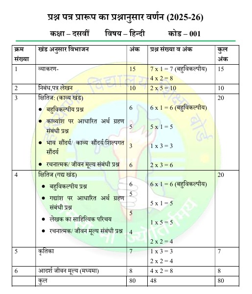 HBSE Class 10 Hindi Syllabus: Question Paper Design Table (2025–26)