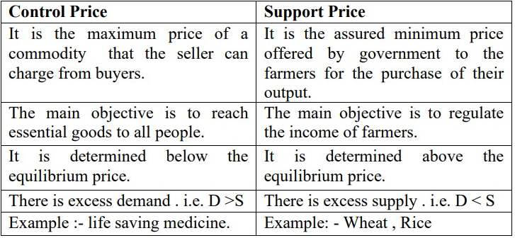 Q8. Support price is determined by the government..... the equilibrium price. (below/above)
