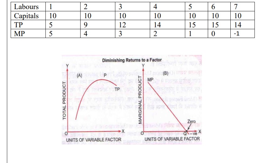 Q13. Explain the diminishing returns of factors with the help of table and graph.