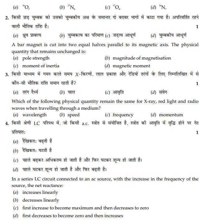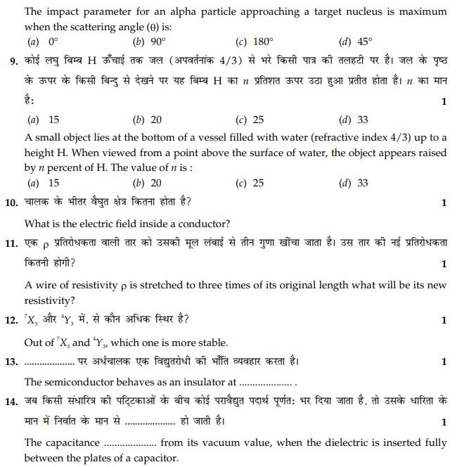 HBSE Class 12 Physics Question Paper Design 2024-25