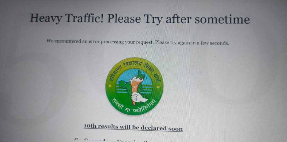 To check the HBSE result, students will require their roll number mentioned in the board exam admit card issued to them for appearing in class 10 exams. Updated as on May 16, 2023 at 3:15 PM bseh.org.in website not working It has been stated on the official website that - "heavy traffic, please try after sometime." Check image below: