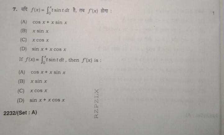 Correct Answer: (D) sin x + x cos x