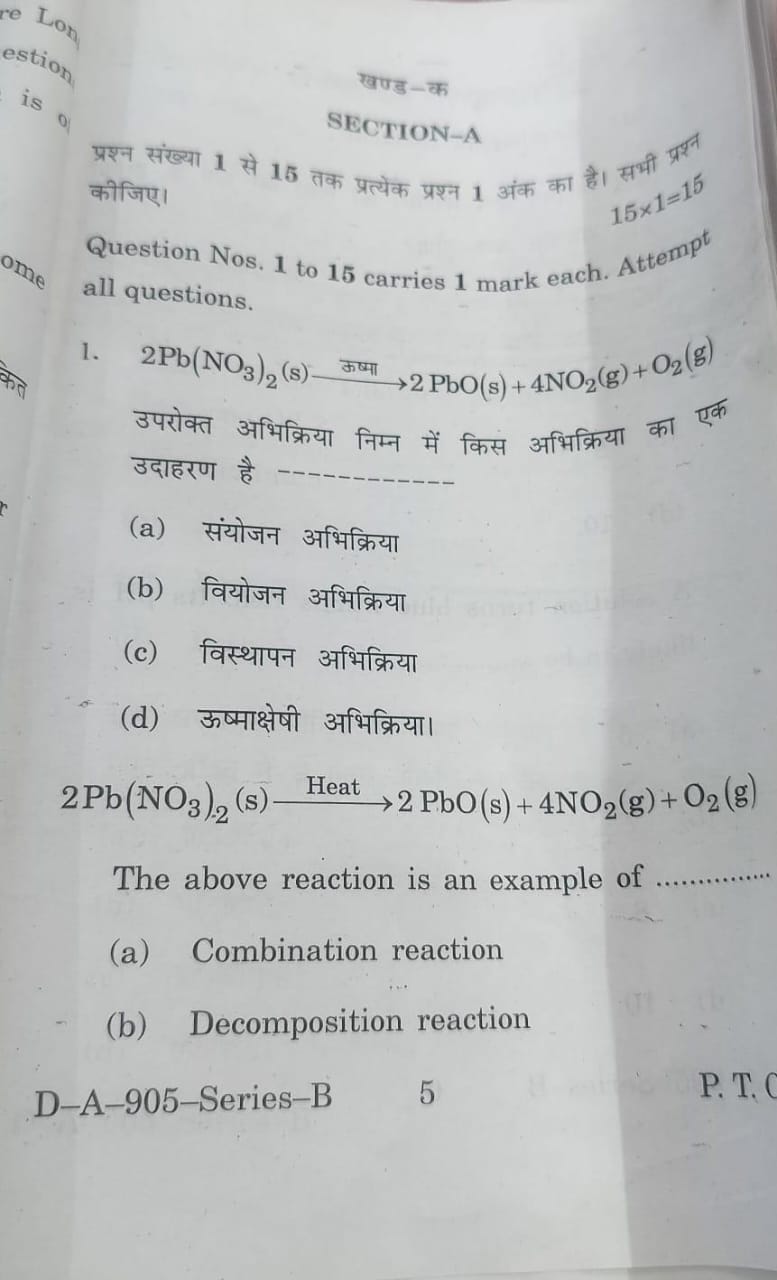 - In Hindi: (b) वियोजन अभिक्रिया (विघटन प्रतिक्रिया)