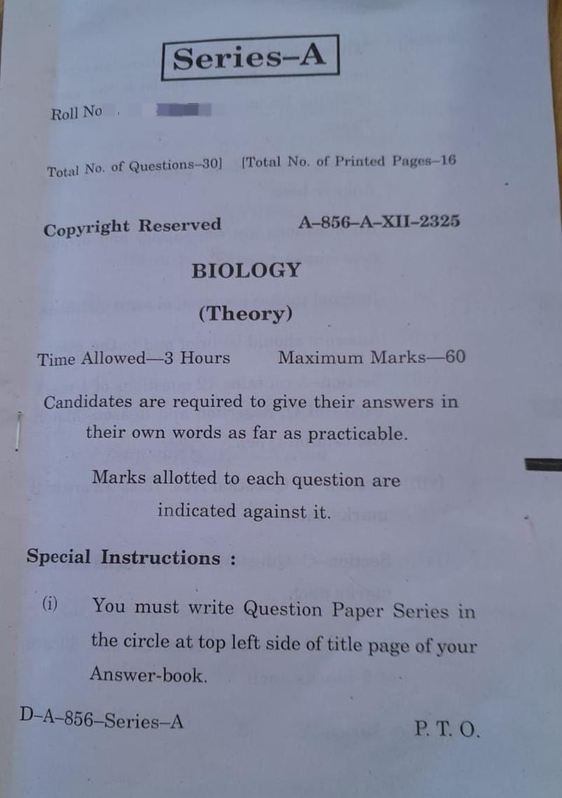 Students can check the class 12th Question Paper Biology exam.