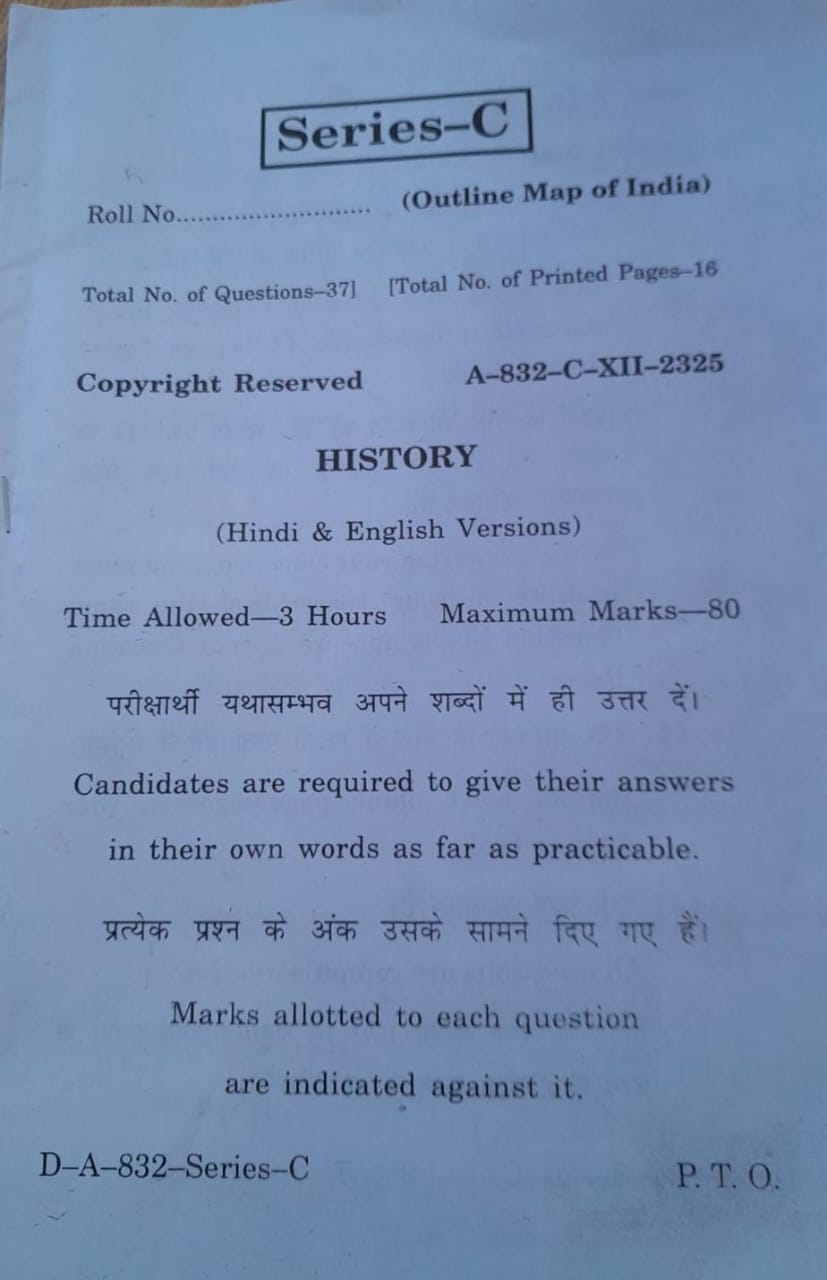 HPBOSE Class 12th History: Question Paper 2025