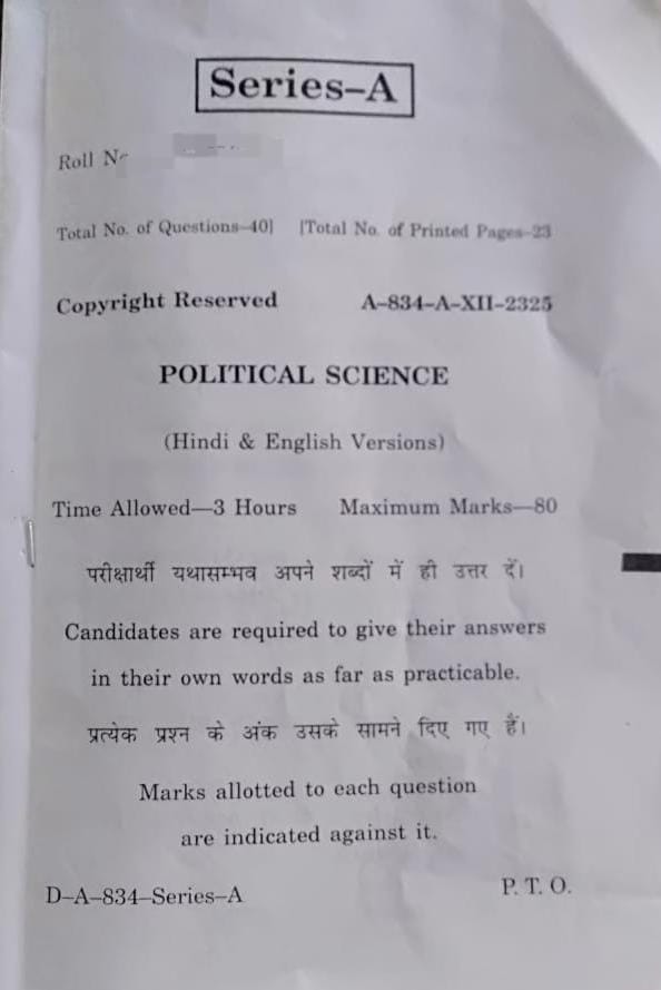 HPBOSE Class 12th Political Science: Question Paper 2025