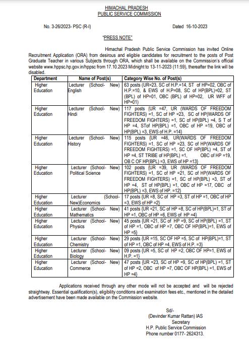 | HPPSC पीजीटी भर्ती 2023 PDF |