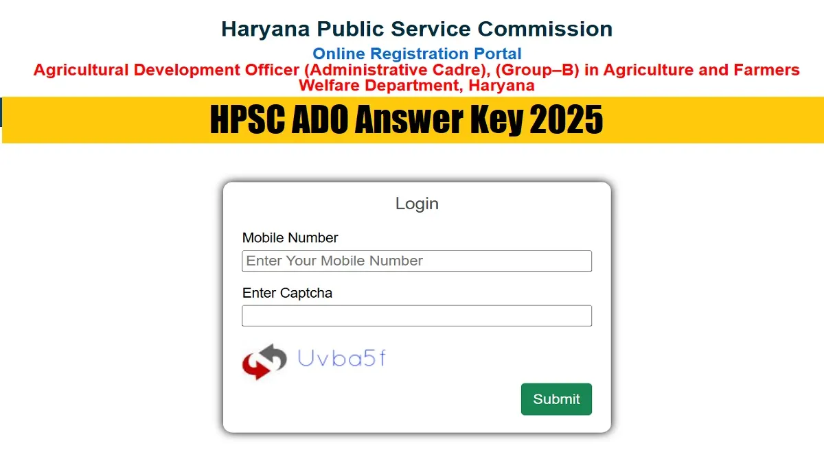 HPSC ADO Answer Key 2025: The Haryana Public Service Commission (HPSC) has released the HPSC ADO Answer Key 2025 for the posts of Agriculture Development Officer (ADO) on its official website, hpsc.gov.in. The Commission has uploaded the standard question booklet and its standard answer key on http://hpsc.gov.in for inviting objections regarding wrong questions/ answers, if any. Candidates who have appeared in the written exam for Agricultural