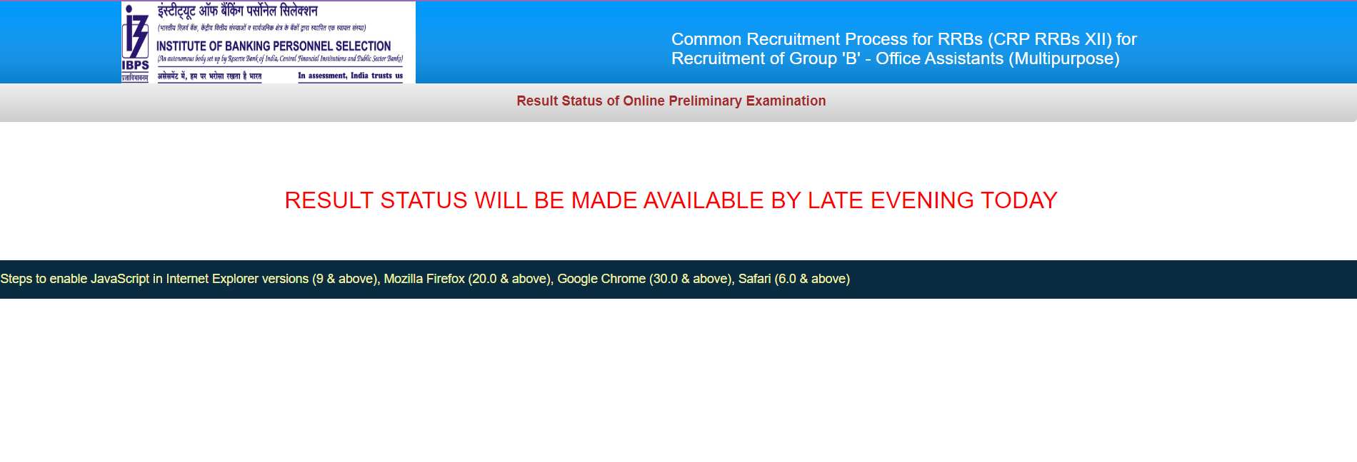 | आईबीपीएस आरआरबी क्लर्क रिजल्ट लिंक | एक्टिव |