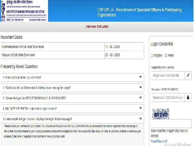 The facility of downloading IBPS CRP SPL X Specialist Officer 2021 Interview Admit Card will be available from 11 February to 27 February 2021. Candidates can now download CRP SPL X Specialist Officer Admit Card 2021 by following the easy steps given below. The date and venue of the documentation round are given on the admit cards. All candidates are advised to visit their exam centre on the day before the commencement of the exam for their convenience.