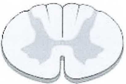 The spinal cord extends from the medulla oblongata of the brain and runs down through the whole length of the vertebral column. The spinal cord is covered by the meninges. It conducts impulses from the skin and muscles to the brain. It also conducts impulses from the brain to the muscles of the trunk and limbs. The spinal cord is a part of the (a)_ Nervous System. The grey matter in the picture given above consists of(b)_ while the white matter consists of (c)_. The spinal cord is concerned with the (d) _actions below the neck. (e)_is the bony structure that protects the spinal cord. | ||||||
