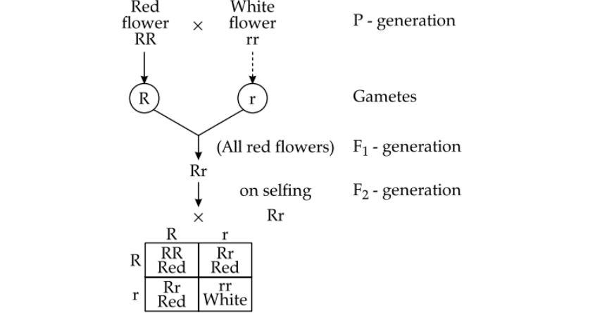 (ii) A pure breeding red flower variety of pen plant (RR) is crossed with a pure breeding white flower variety of pea plant (rr).