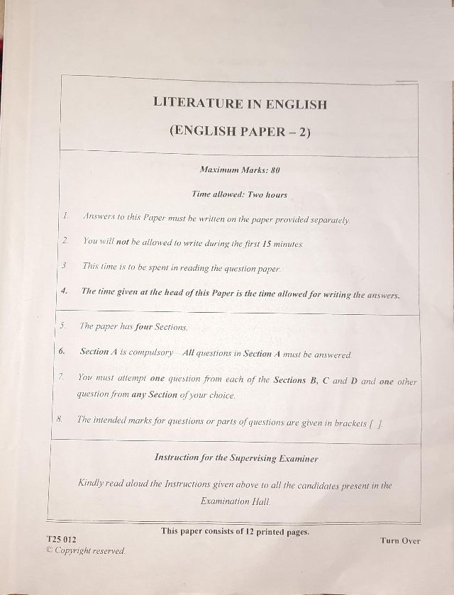 ICSE Class 10 English Literature (Paper 2) Question Paper 2025 Download PDF |