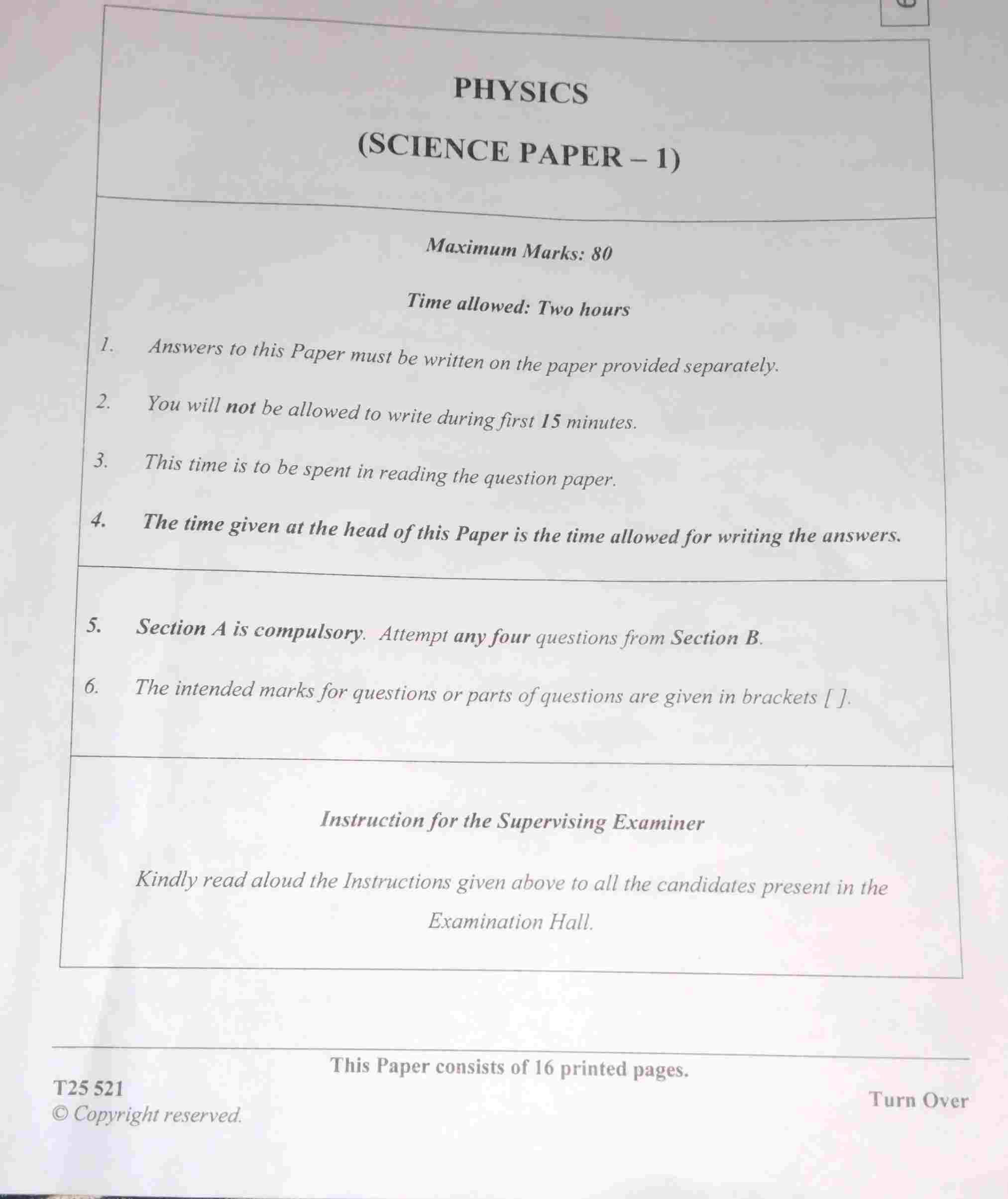 ICSE Class 10 Physics Question Paper 2025 PDF