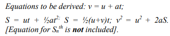 | 2. Motion in One Dimension | Scalar and vector quantities, distance, speed, velocity, acceleration; graphs of distance-time and speed-time; equations of uniformly accelerated motion with derivations. Examples of Scalar and vector quantities only, rest and motion in one dimension; distance and displacement; speed and velocity; acceleration and retardation; distance-time and velocity-time graphs; the meaning of slope of the graphs; [Nonuniform acceleration excluded]. Simple numerical problems. |