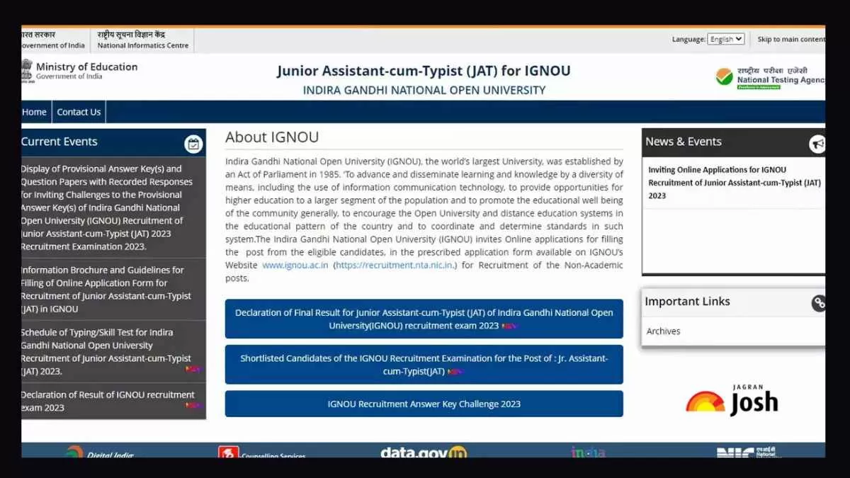 - होम पेज "इग्नू JAT फाइनल रिजल्ट 2023" लिंक पर क्लिक करें।