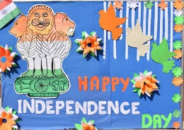 - Bulletin board celebrating India Day with colorful decorations, cultural symbols, and informative posters about Indian heritage.