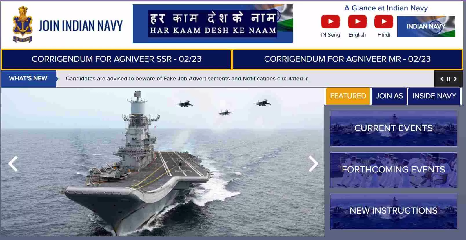 - सबसे पहले आपको भारतीय नौसेना की आधिकारिक वेबसाइट पर जाना होगा।