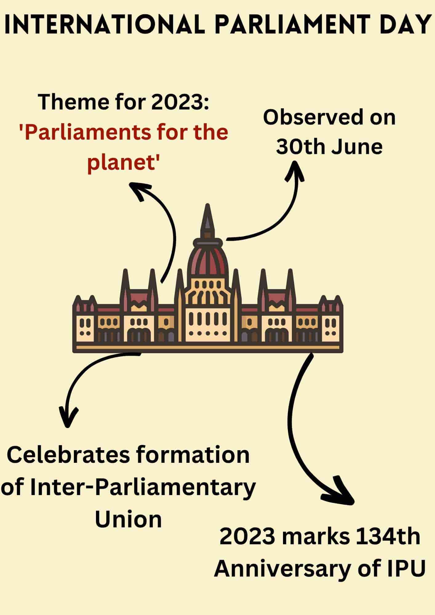 International Day of Parliamentarism 2023: International Day of Parliamentarism is celebrated every year on June 30 to mark the anniversary celebration of the Inter-Parliamentary Union (IPU), formed in 1889. In 2018, a United Nations General Assembly Resolution decided on establishing a day to review the progress that parliaments might have made in achieving pre-determined key goals. These goals include carrying out self-assessment, inclining towards the participation of women and young MPs, adapting to new technologies, being more representative, and moving ahead with the times.
