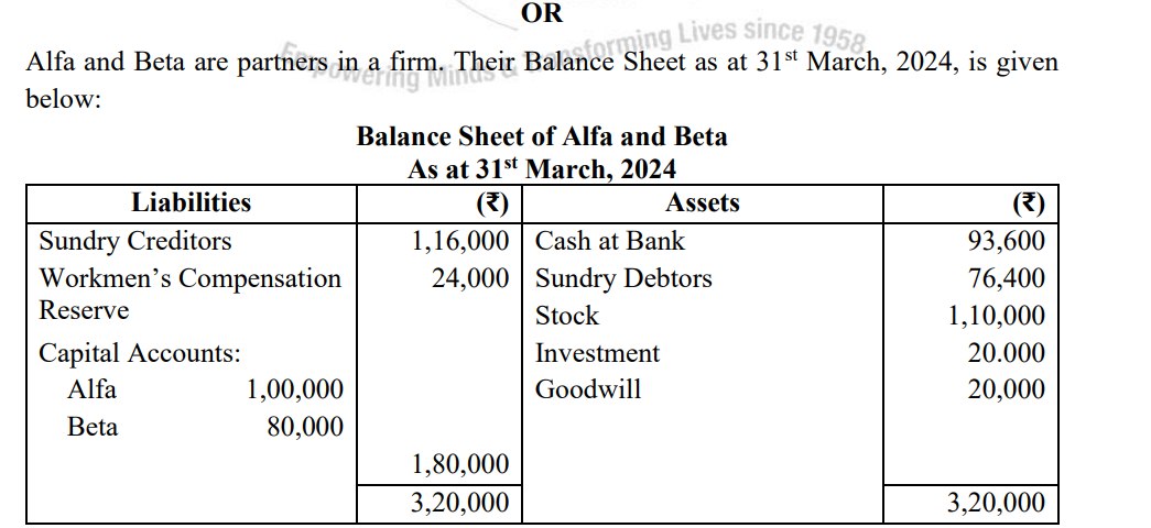 | (viii) Mention the liability of a partnership firm which is not shown in its Balance Sheet, but is paid off at the time of the dissolution of the firm. |