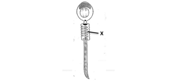 | (vii) | In the given figure of mammalian spermatozoon, “X” is an organelle. Identify the organelle. (Recall)