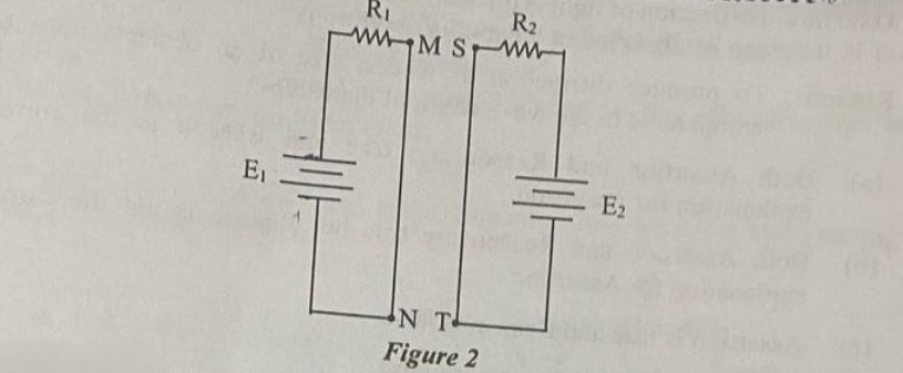 4. A student has made connections, as shown in Figure 2 below, so that the wires MN and ST repel each other. But it is observed that they are attracting each other.