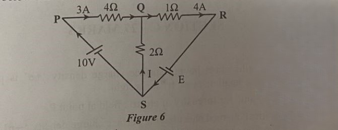 (i) Using Kirchhoff’s laws and given resistances, the current ‘I’ through the 2Ω resistor is 2A.