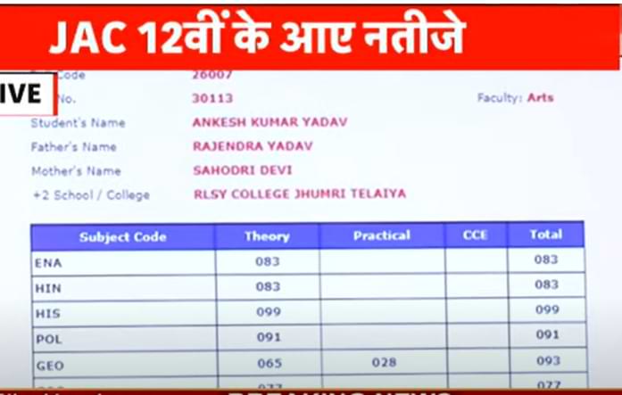 हालांकि झारखंड एकेडिमक काउंसिल (Jharkhand Academic Council, JAC) की ओर से अभी तक रिजल्ट को लेकर कोई ऑफिसियल नोटिस जारी नहीं किया गया है. लेकिन उम्मीद की जा रही है कि कॉमर्स और आर्ट्स का परिणाम आज घोषित किया जायेगा.
