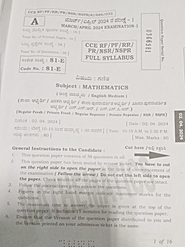 Karnataka SSLC Maths Exam 2024: Key Highlights
