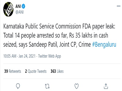 The branch has arrested six persons including a commercial tax inspector who was selling the question papers. The police have also seized around Rs. 24 Lakh cash and three vehicles from them and the further investigation is on.