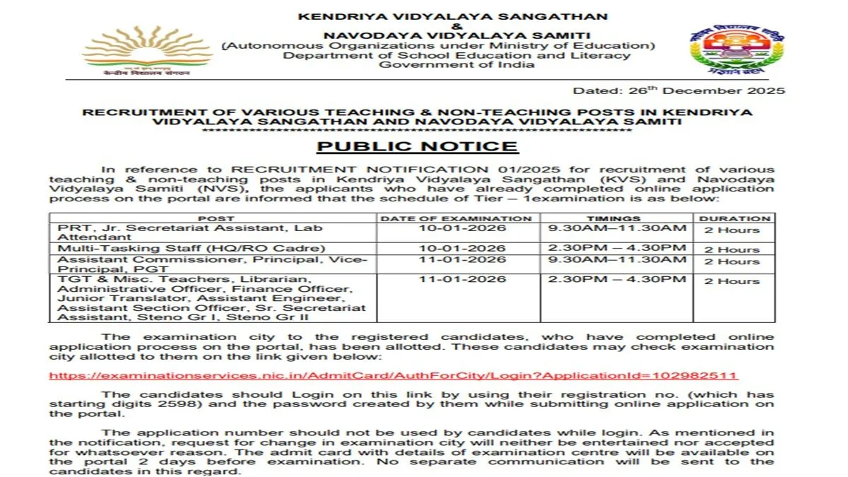| KVS NVS Exam Dates | January 10 & 11, 2026 |