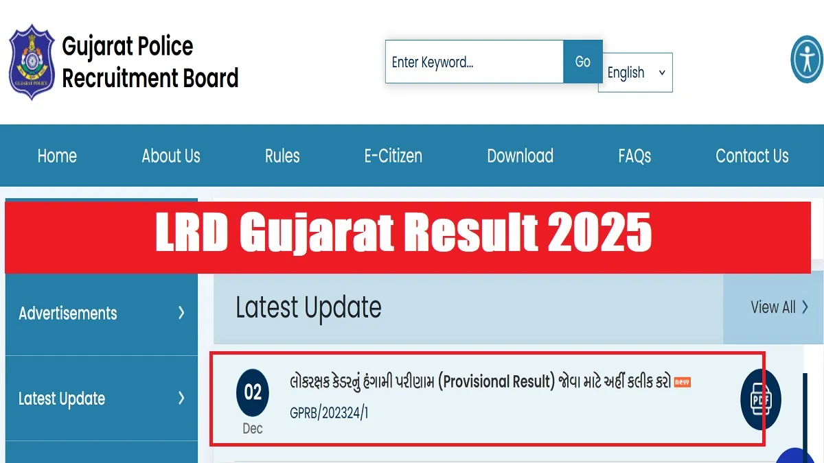 LRD Gujarat Result 2025: Lokrakshak Recruitment Board (LRB) or Lokrakshak Bharati Board, Gujarat announced the final result of the exam for the posts of Constable on its website i.e. https://gprb.gujarat.gov.in. The provisional merit list has been released in pdf format containing the roll number and name of the shortlisted candidates. Candidates who appeared in the written exam can download the Lokrakshrak Recruitment Board Result and also the cut off marks. The board has shortlisted a total of 11925 candidates for Unarmed Police Constable-Conservator, Armed Police Constable-Conservator and SRPF Constable. The Board has also released the provisional merit list of not selected candidates on its official website.