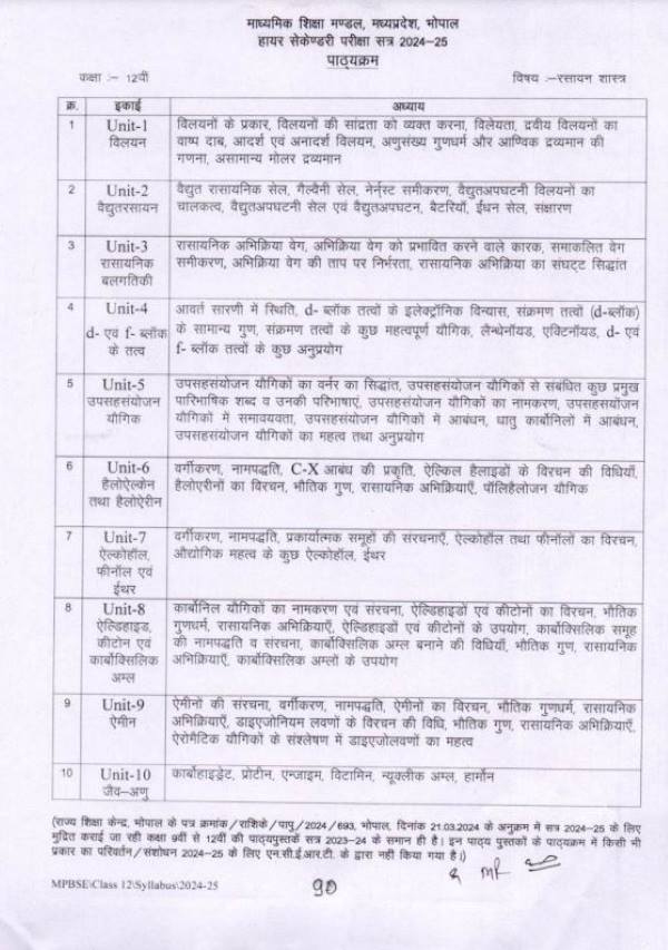 CHECK: MP Board Class 12 Chemistry Syllabus 2024-25 Free PDF Download