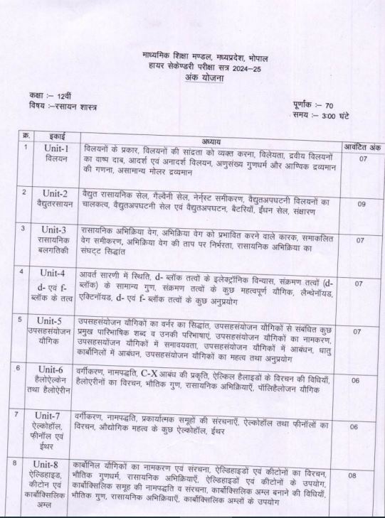 CHECK: MP Board Class 12 Chemistry Marking Scheme 2024-25