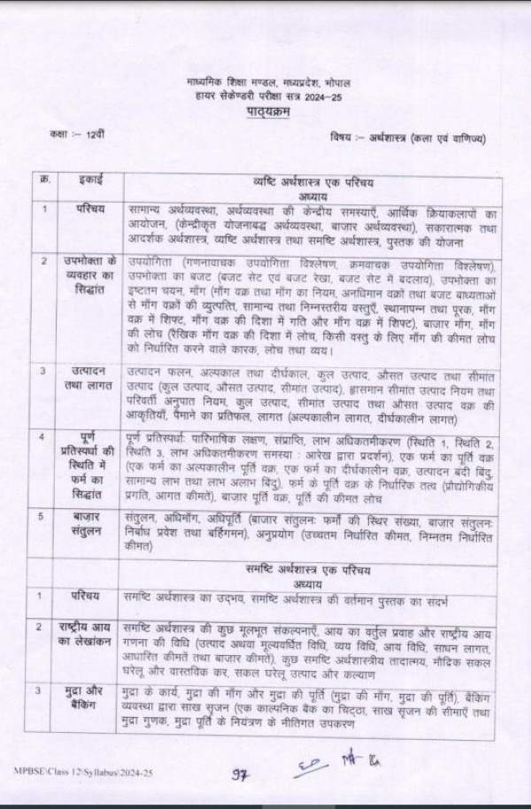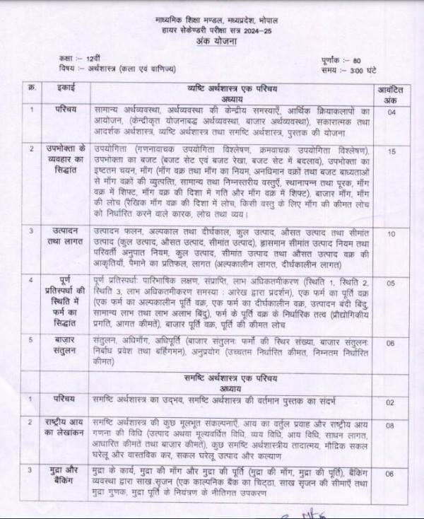 CHECK: MP Board Class 12 Economics Syllabus 2024-25