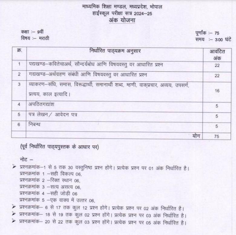 MP Board Class 9 Marathi Marking Scheme 2024-25