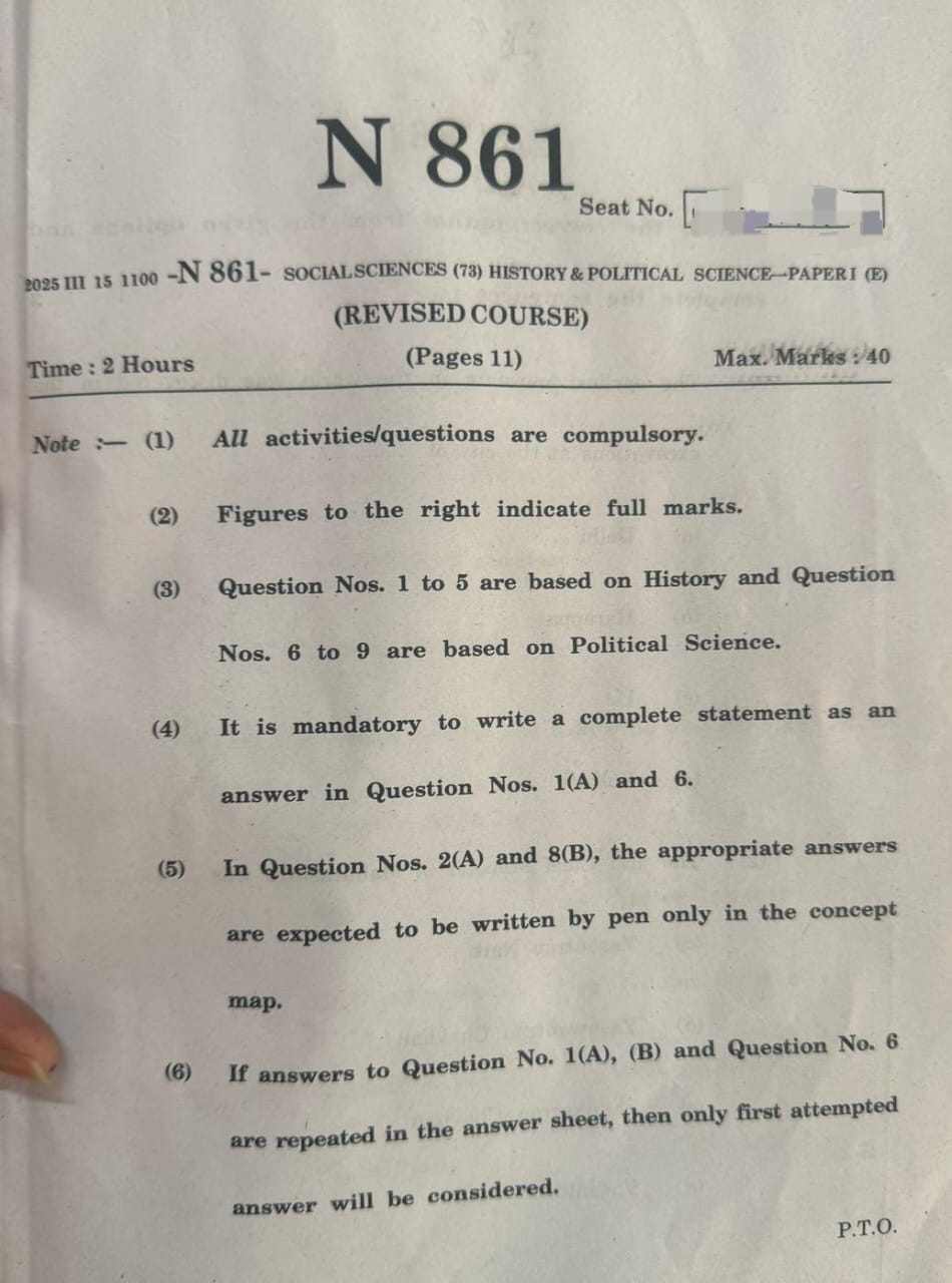 Maharashtra SSC Class 10 Social Science Paper 1 Question Paper 2025