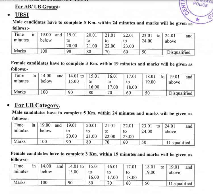 | Meghalaya Police Call Letter: What are the total marks of the Physical Exam ? Meghalaya Police Constable Admit Card: What are the total marks of the Physical Exam ? The exam will be held for 100 marks. Meghalaya Police Constable Admit Card: What is PET Students will be asked to run as follow: