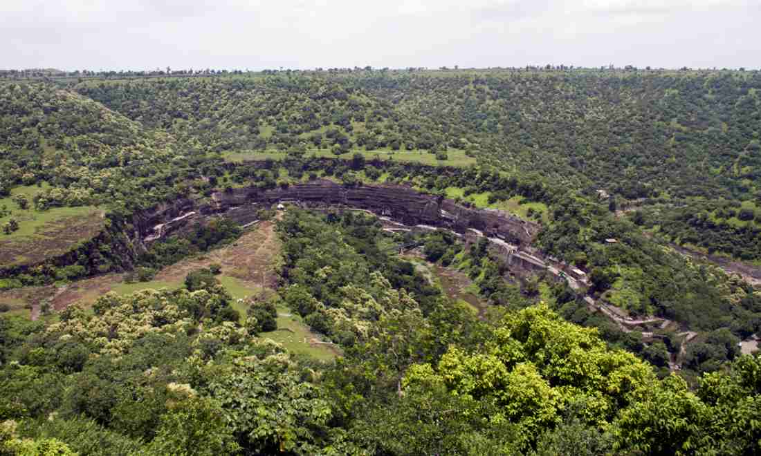 - These caves were excavated in horse-shoe shaped bend of rock scarp nearly 76 m in height overlooking a narrow stream known as Waghora. In all 30 caves were hewn out of the living rock in different periods according to the necessity.