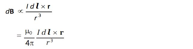 , where dB is the magnetic field, I is the current, dl is the element length, r is the radius.