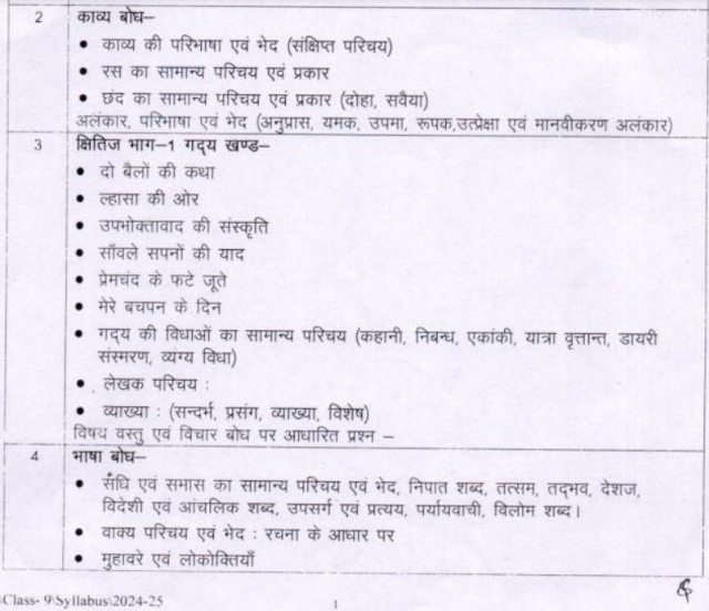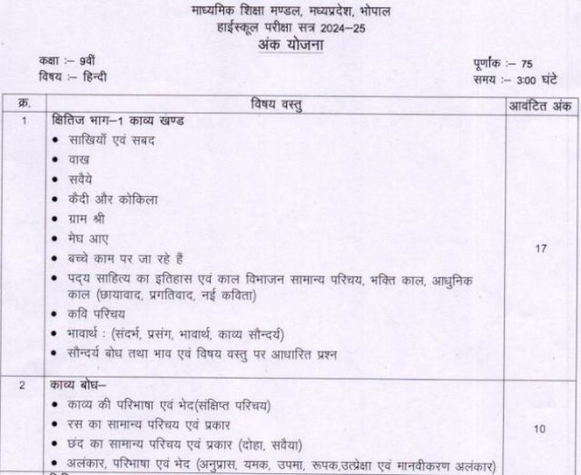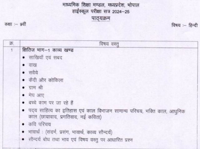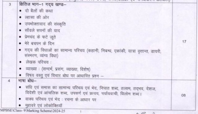 MPBSE Class 9 Hindi Syllabus 2024-2025 PDF |