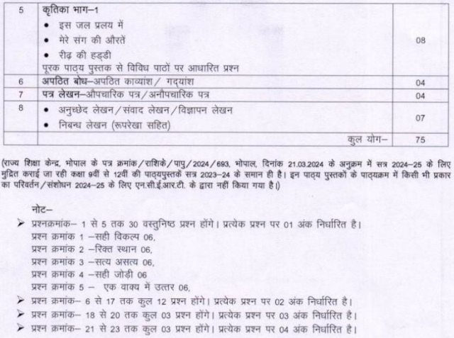 MP Board Class 9 Hindi Question Paper Pattern & Marking Scheme 2024-2024