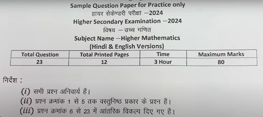 The MP Board Class 12 Maths question paper 2024 has been provided below.