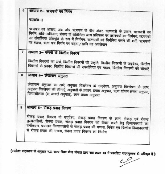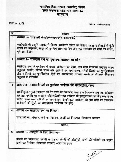 MPBSE Class 12 Accountancy Syllabus 2023-2024 in Hindi