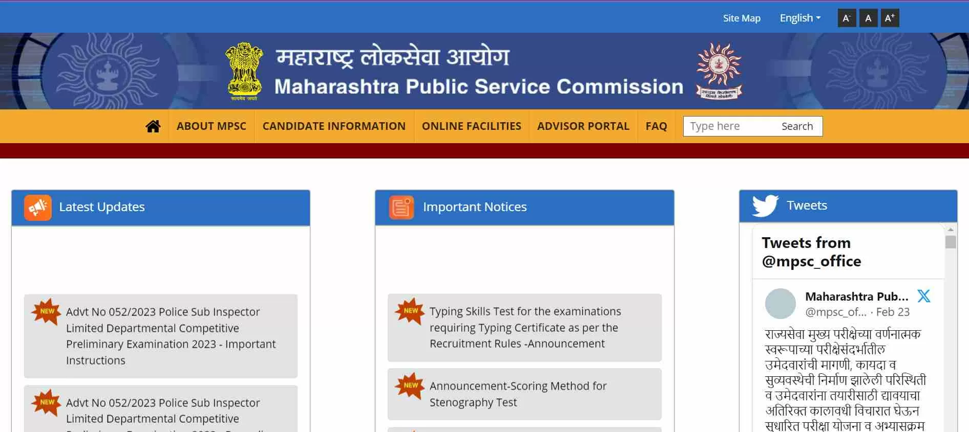 चरण 1: आप पहले आधिकारिक वेबसाइट - mpsc.gov.in पर जाएं।