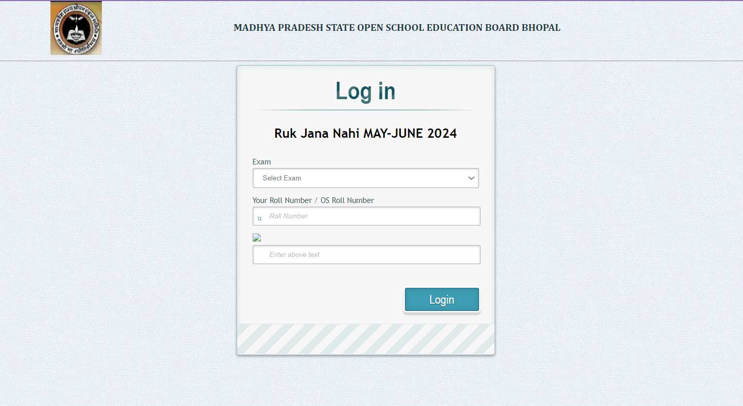 MP Ruk jana Nahi Result 2024 देखने के लिए लॉगिन विंडोमध्य प्रदेश राज्य ओपन स्कूल (एमपीएसओएस) रुक जाना नहीं 10वीं, 12वीं परिणाम 2024 जारी कर दिया है। छात्र यहां रिजल्ट लॉगिन विंडो की इमेज देख सकते हैं।
