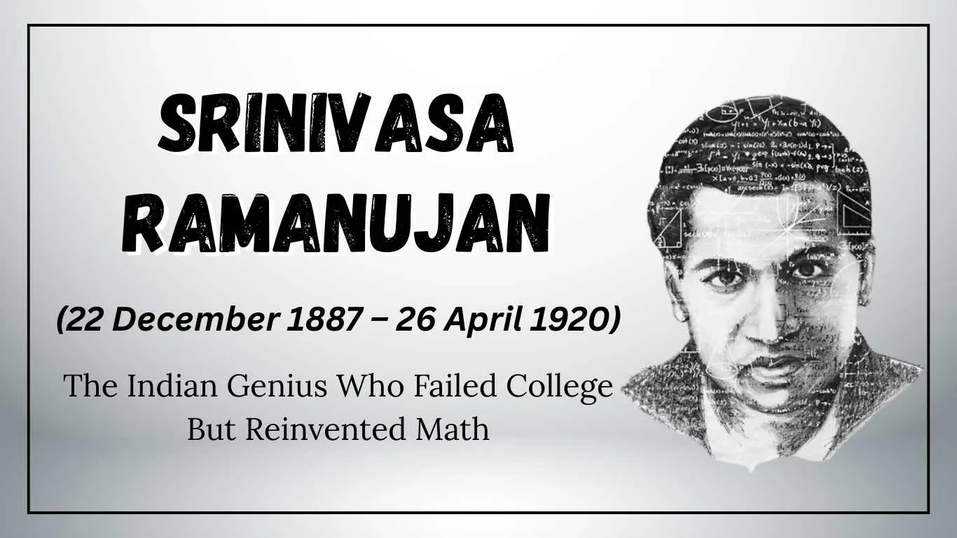 Ramanujan was an Indian mathematical genius who failed out of college because he refused to study non-mathematical subjects.By every academic rule we use today, Srinivasa Ramanujan was a failure. He lost his college scholarship, failed his exams, and never managed to earn a degree. Yet, today, the world’s most brilliant mathematicians are still trying to finish the work he started. His life is a powerful reminder that "marks" on a report card aren't the only measure of a human mind.