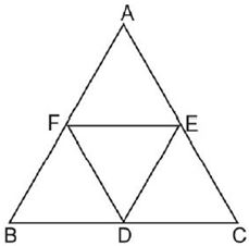 2. In the given figure, D, E and F are mid-points of the sides BC, CA and AB of △ABC. If AB = 4.3 CM, BC = 5.6 cm and AC = 3.6 cm, find the perimeter of △DEF.