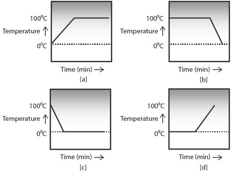 12.A student heats a beaker containing ice and water. He measures the temperature of the content of the beaker as a function of time. Which of the following (Fig. 1.1) would correctly represent the result? Justify your choice.