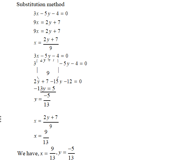1. Solve the following pair of linear equations by the elimination method and the substitution method :